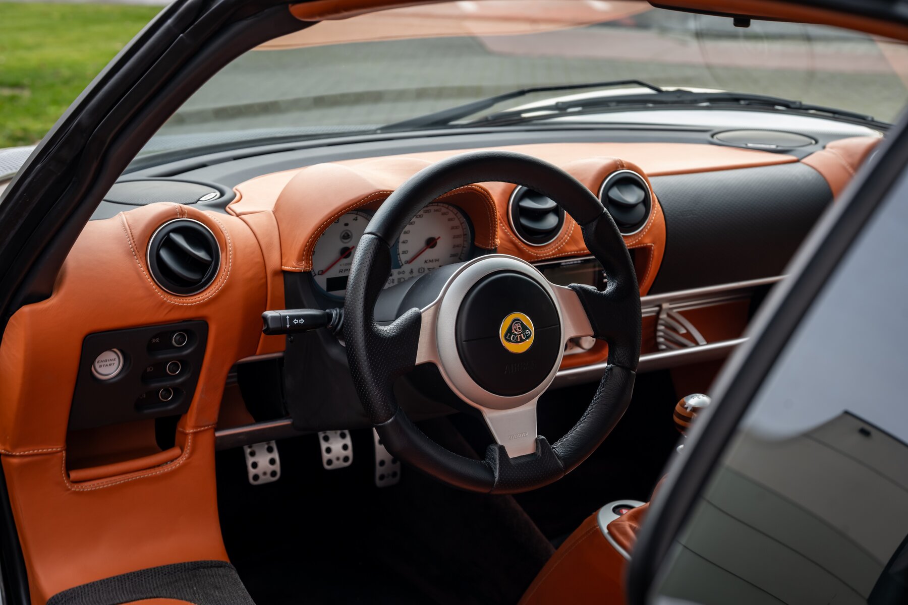 Combined with the tan leather interior, the wooden gear knob (a well-known detail of this pack) and the air conditioning, you get a Lotus you won’t just drive on a Sunday morning—but one you’ll happily take on a weekend trip as well.