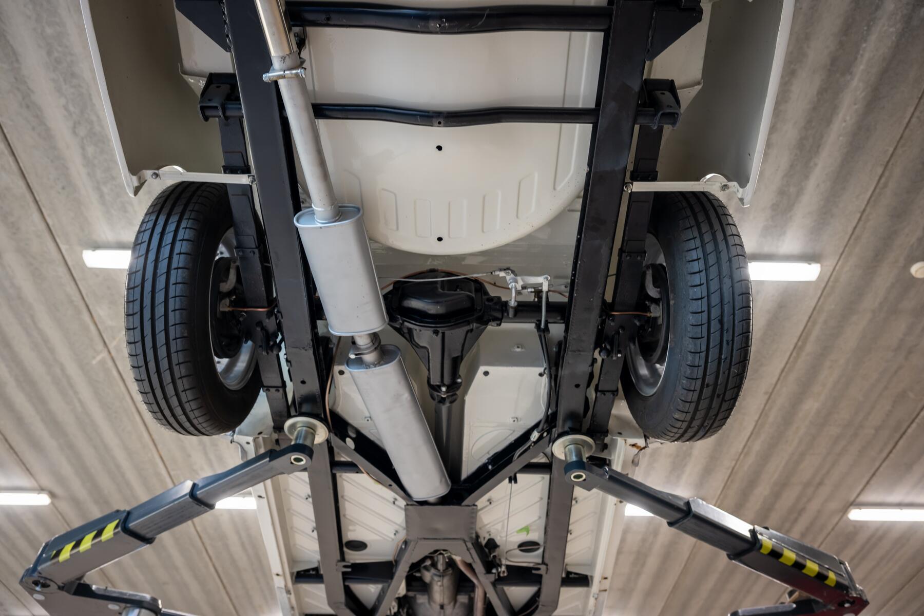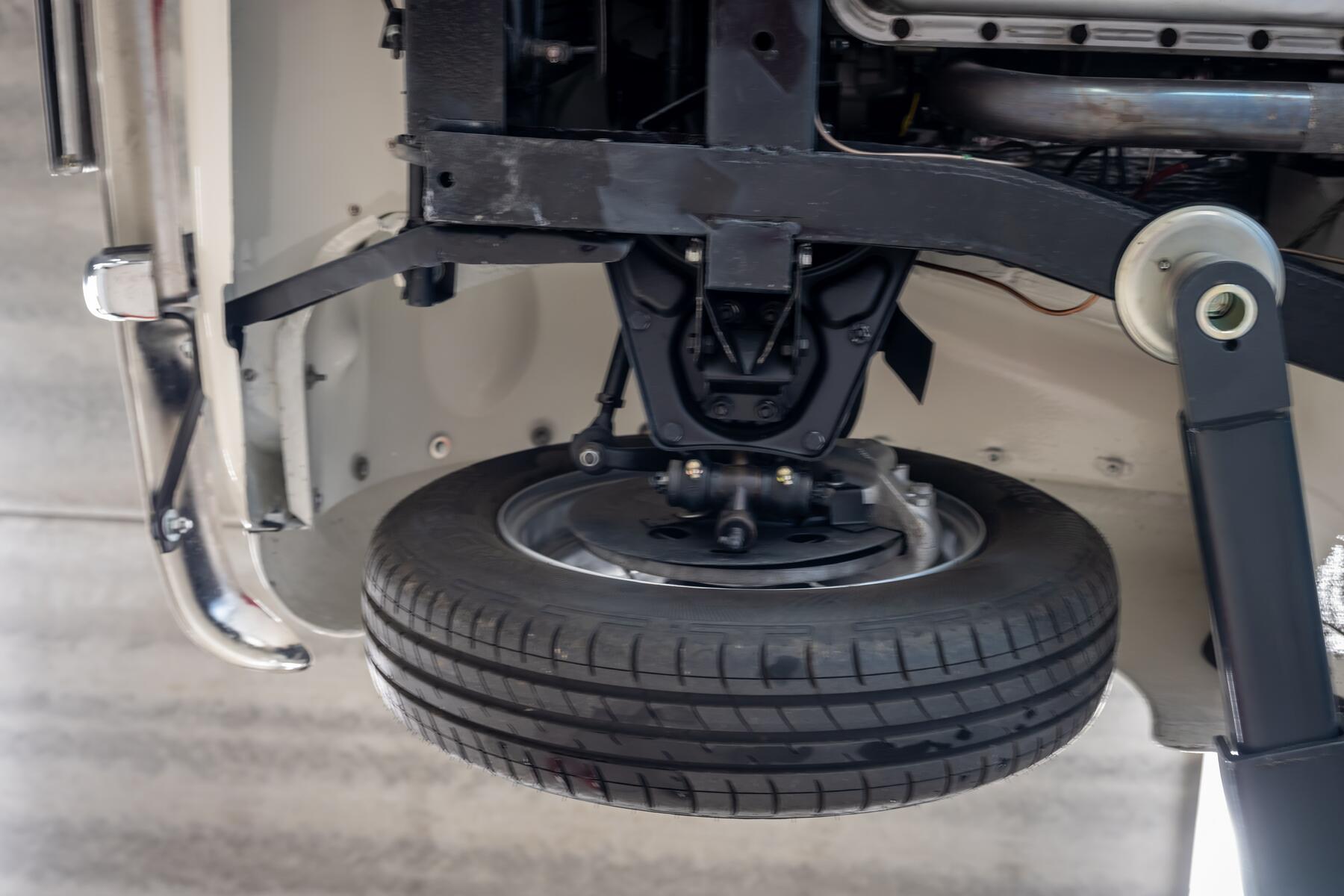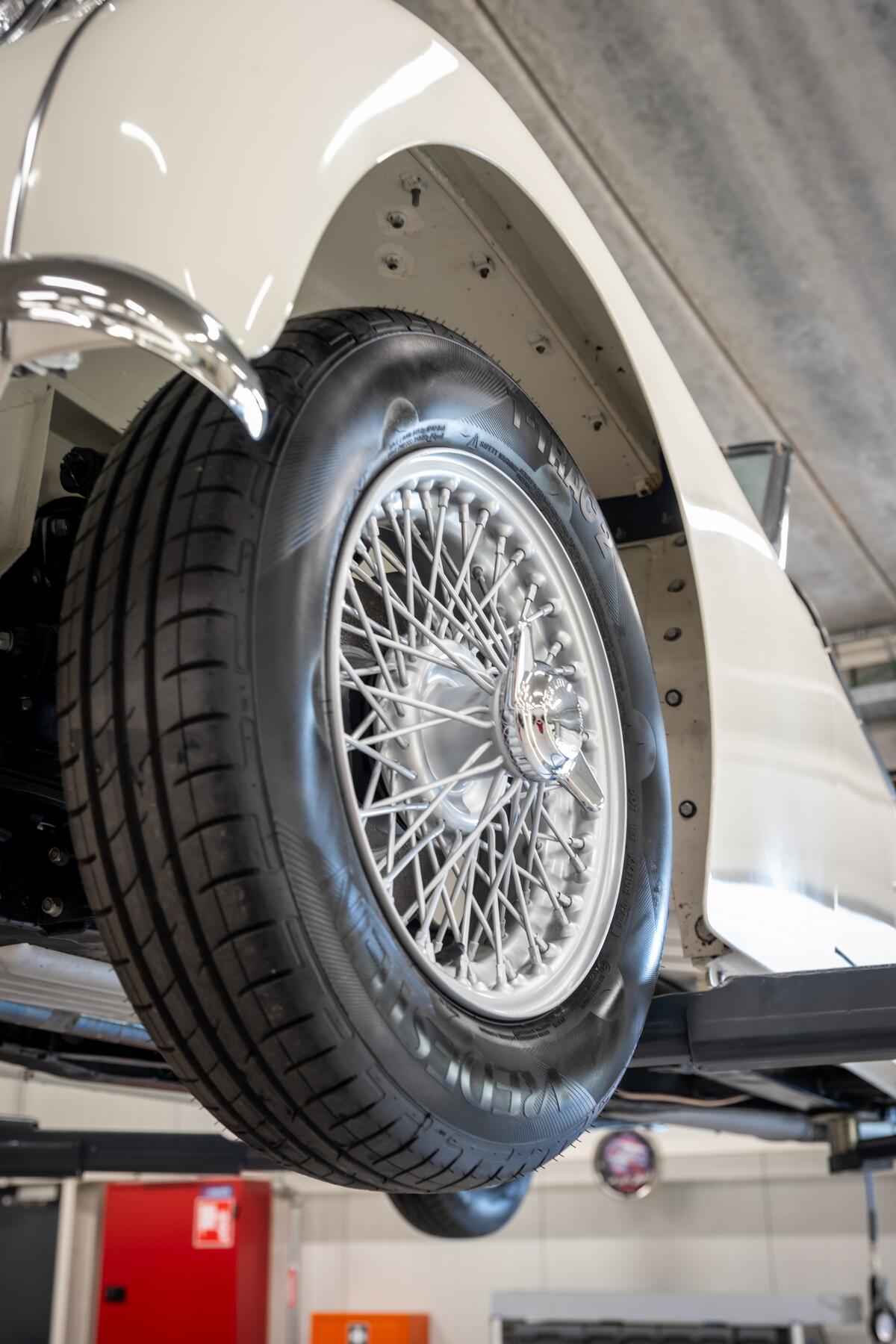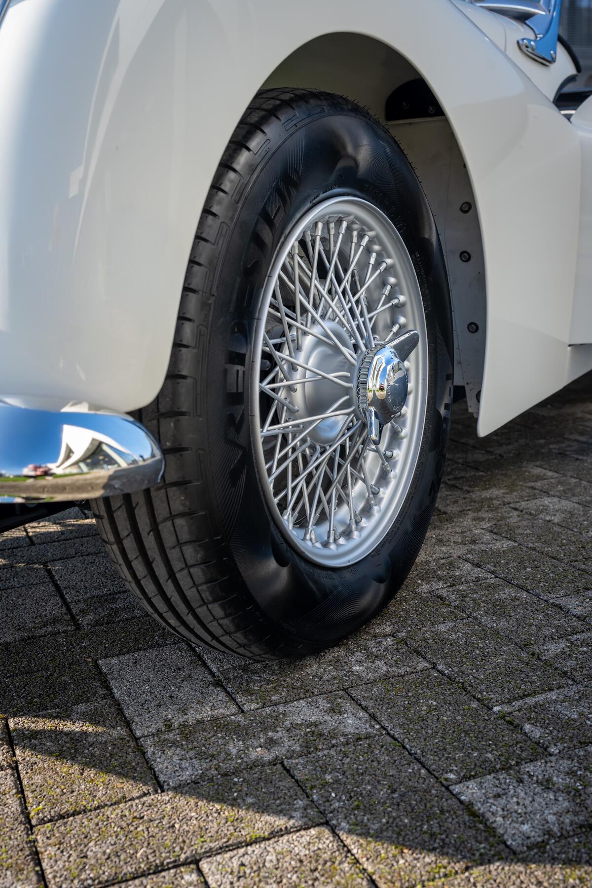 Includes spare wheel, wire wheels, black hood and sidescreens (stowable in the boot)