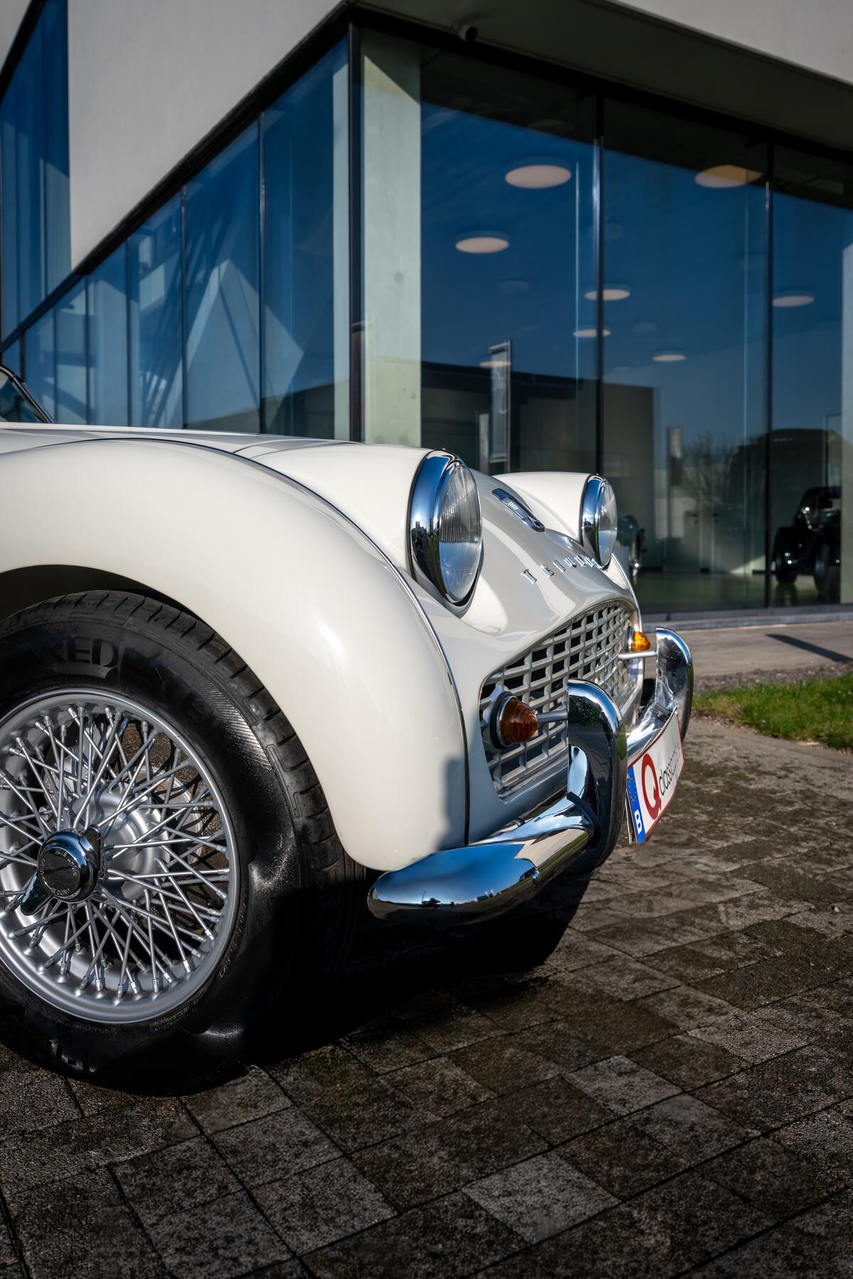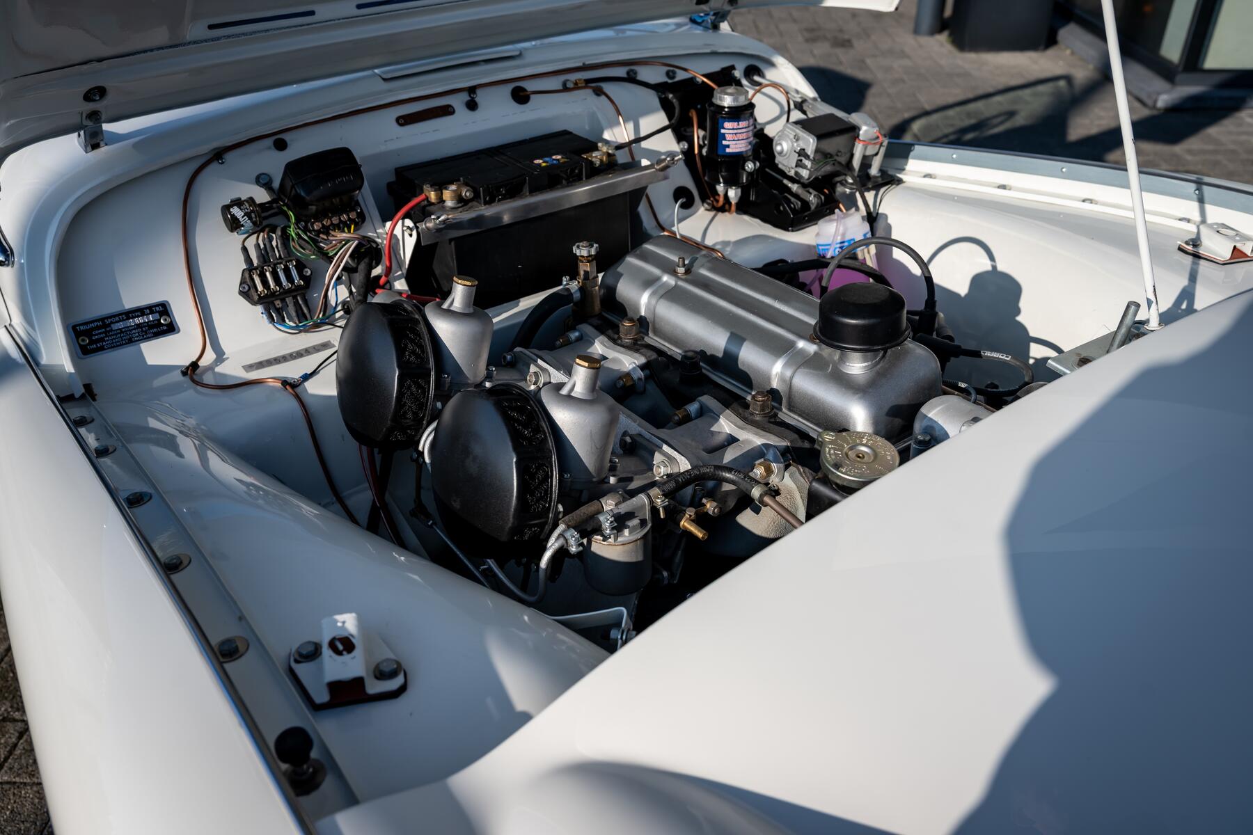 The TR3A is a true driver’s car: low weight, direct steering and a willing four-cylinder that picks up eagerly. Thanks to its wide track, short wheelbase and front disc brakes (advanced for its day), it feels agile, communicative and assured. It’s exactly this sporty, analogue character that made the TR3A a genuine sports car of its era—an engaging machine that could comfortably go toe-to-toe with many German contemporaries, often feeling more alive. This is all about sensation: steer, shift, listen—and grin.