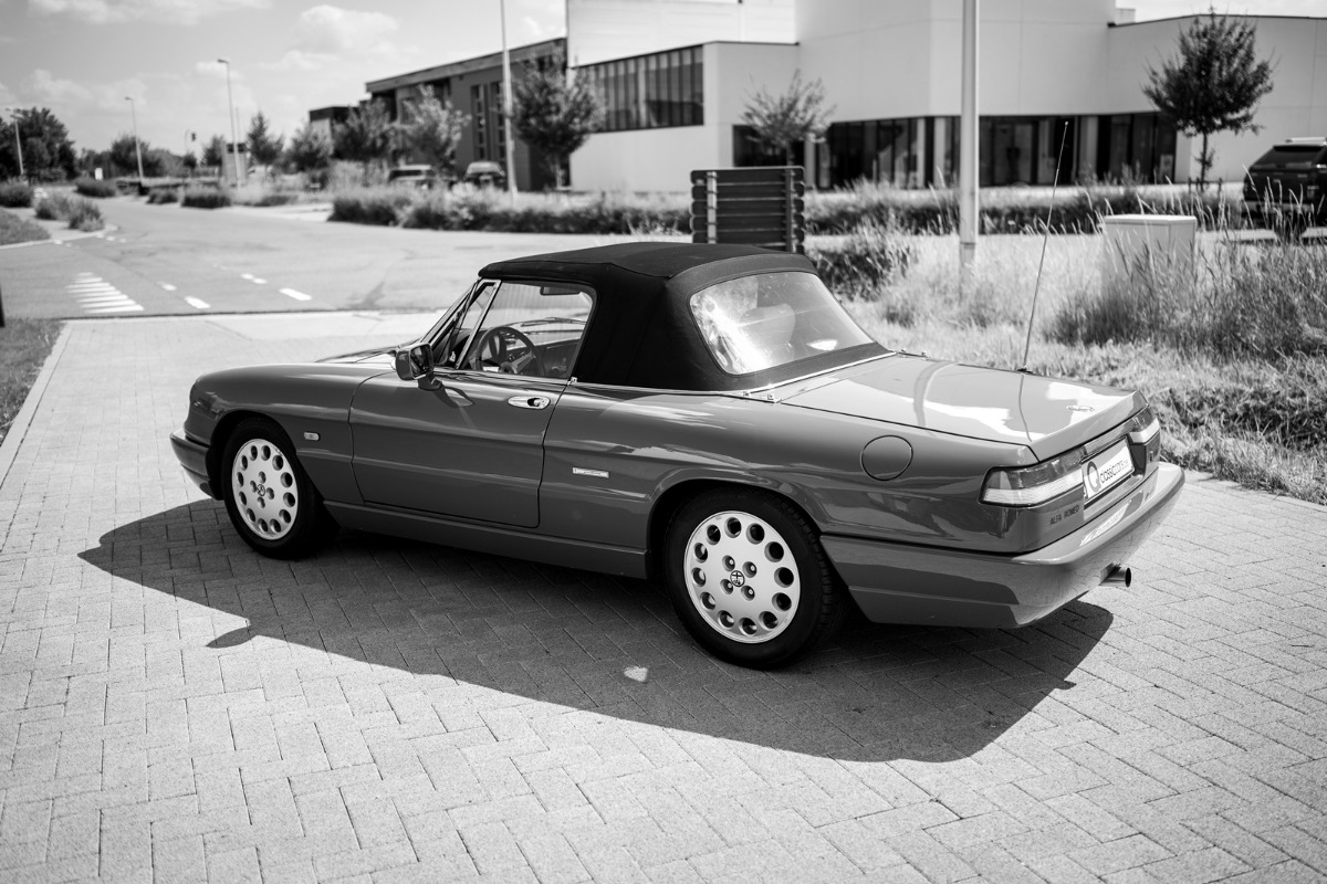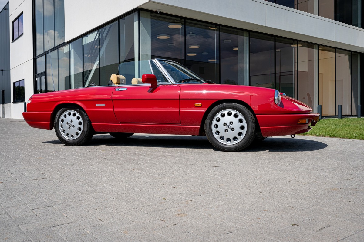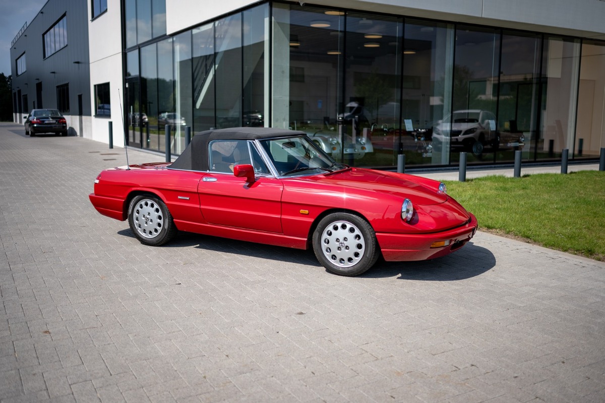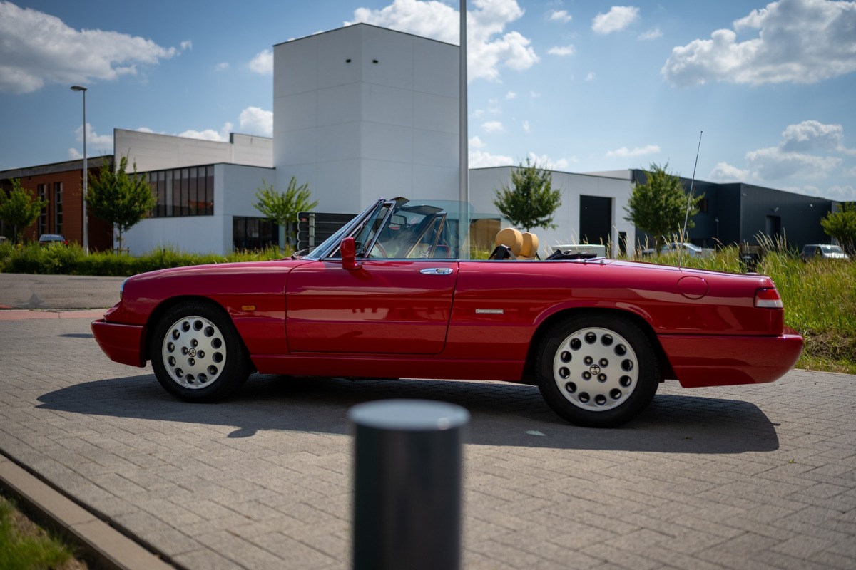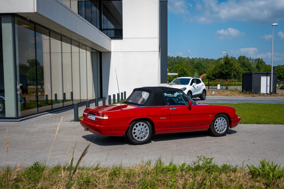 Deze Alfa Romeo Spider 2.0 werd op 22 februari 1991 nieuw afgeleverd in Monopoli (I) aan Leonardo Fumarosa. Na enkele jaren gekoesterd te zijn in Italië verhuisde deze wagen naar Nederland. Hiervan getuige een handgeschreven brief van de Italiaanse eigenaar, dat hij de wagen verkocht heeft met de lage kilometerstand van slechts 26464 km. Dit gebeurde in augustus 2004. Na de import in Nederland werd de wagen verder perfect onderhouden en bleef de kilometerstand beperkt owv het liefhebbersgebruik.
