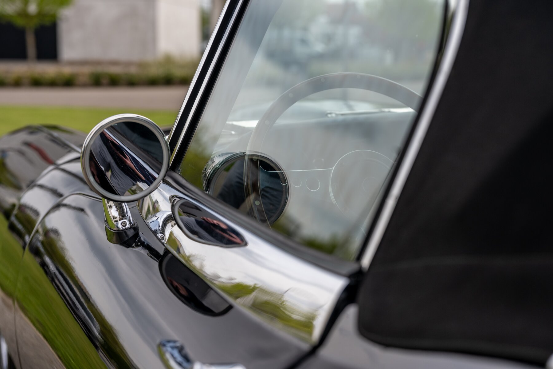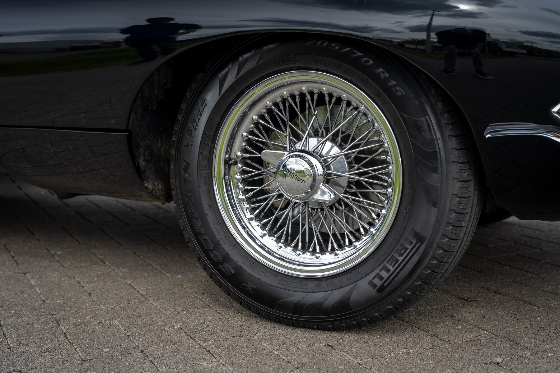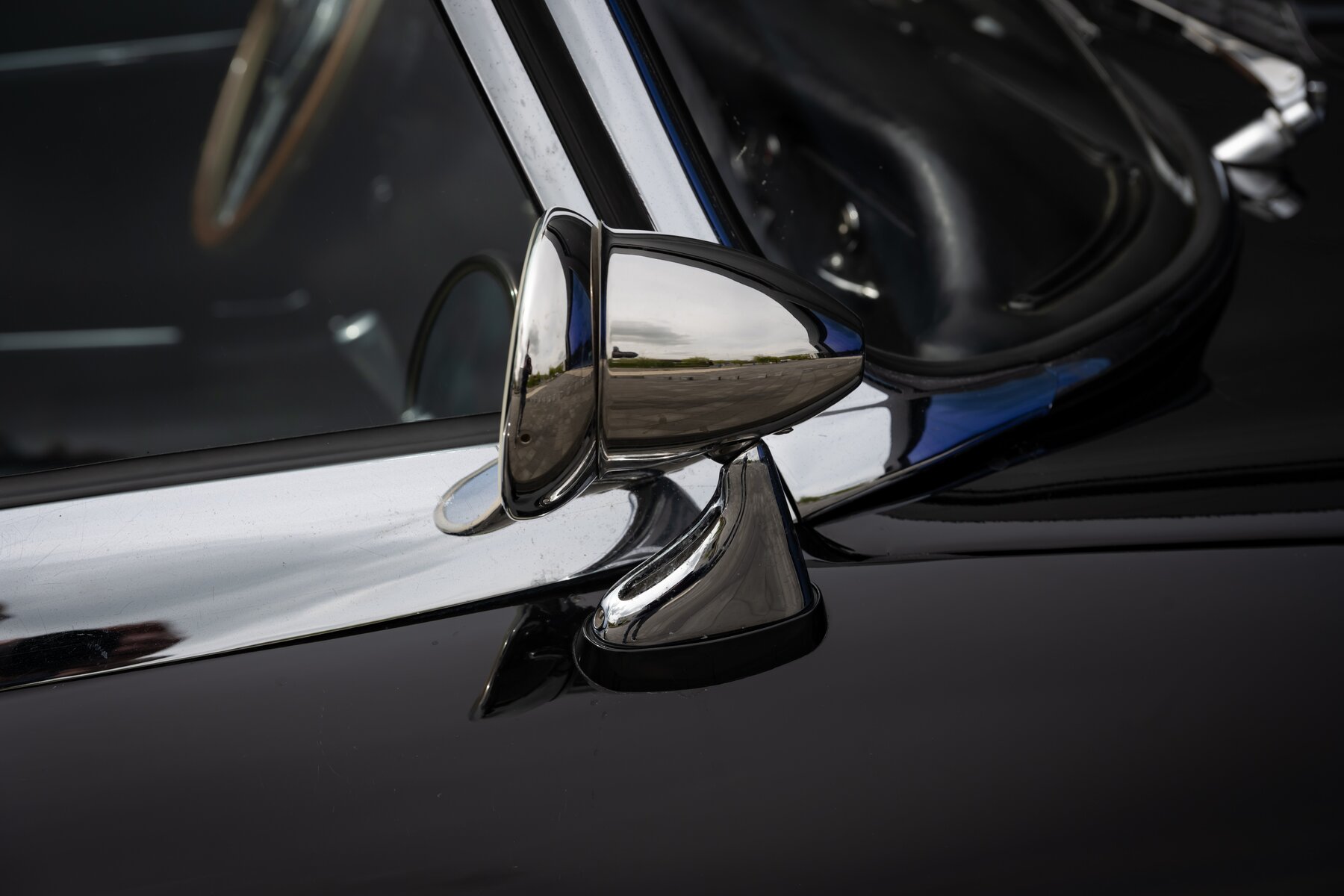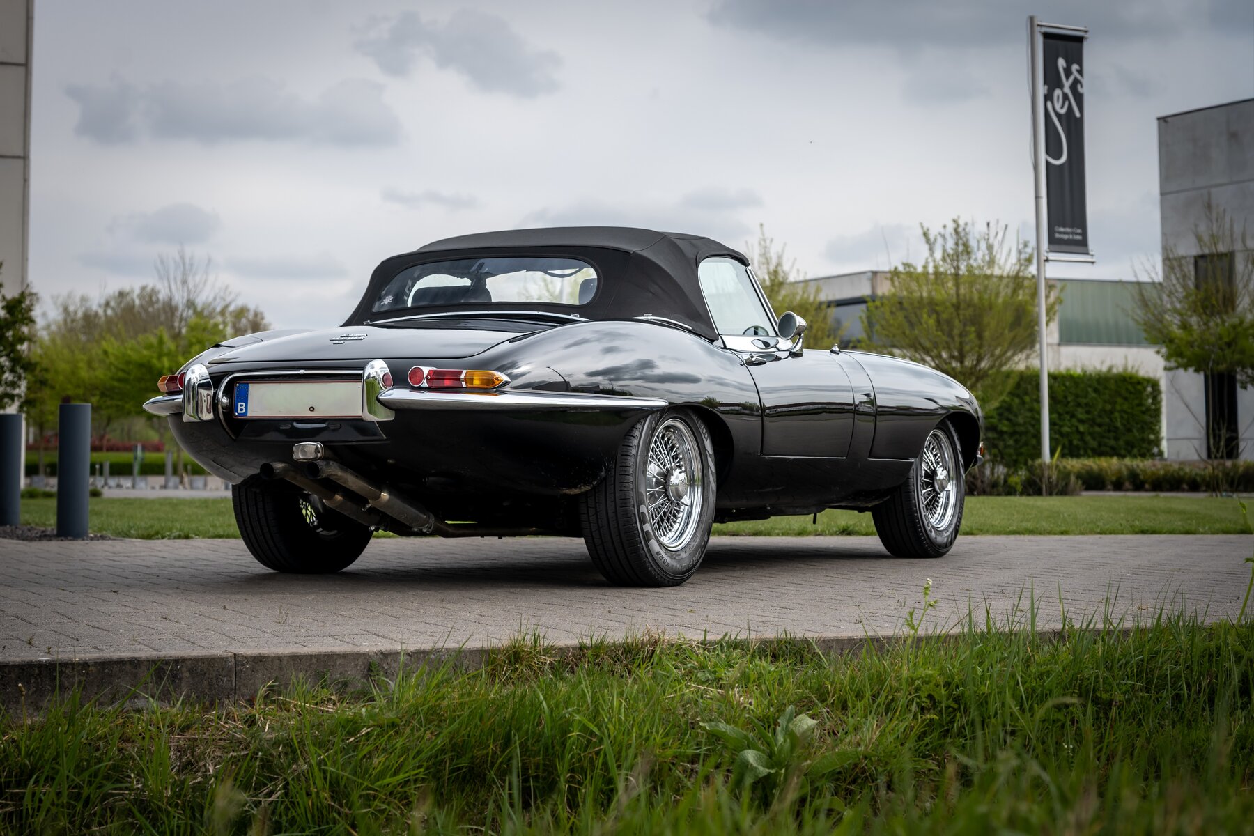 De uitvoering is bijzonder stijlvol en tijdloos: zwart exterieur, een zwart mohair cabriodak, zwart lederen interieur en prachtige chromen spaakwielen. Een uiterst elegante en krachtige kleurencombinatie die perfect past bij de sensuele lijnen van de E-Type. Met open dak komt het lange motorkapprofiel, de lage zitpositie en de klassieke Jaguar-sfeer nog sterker tot hun recht.