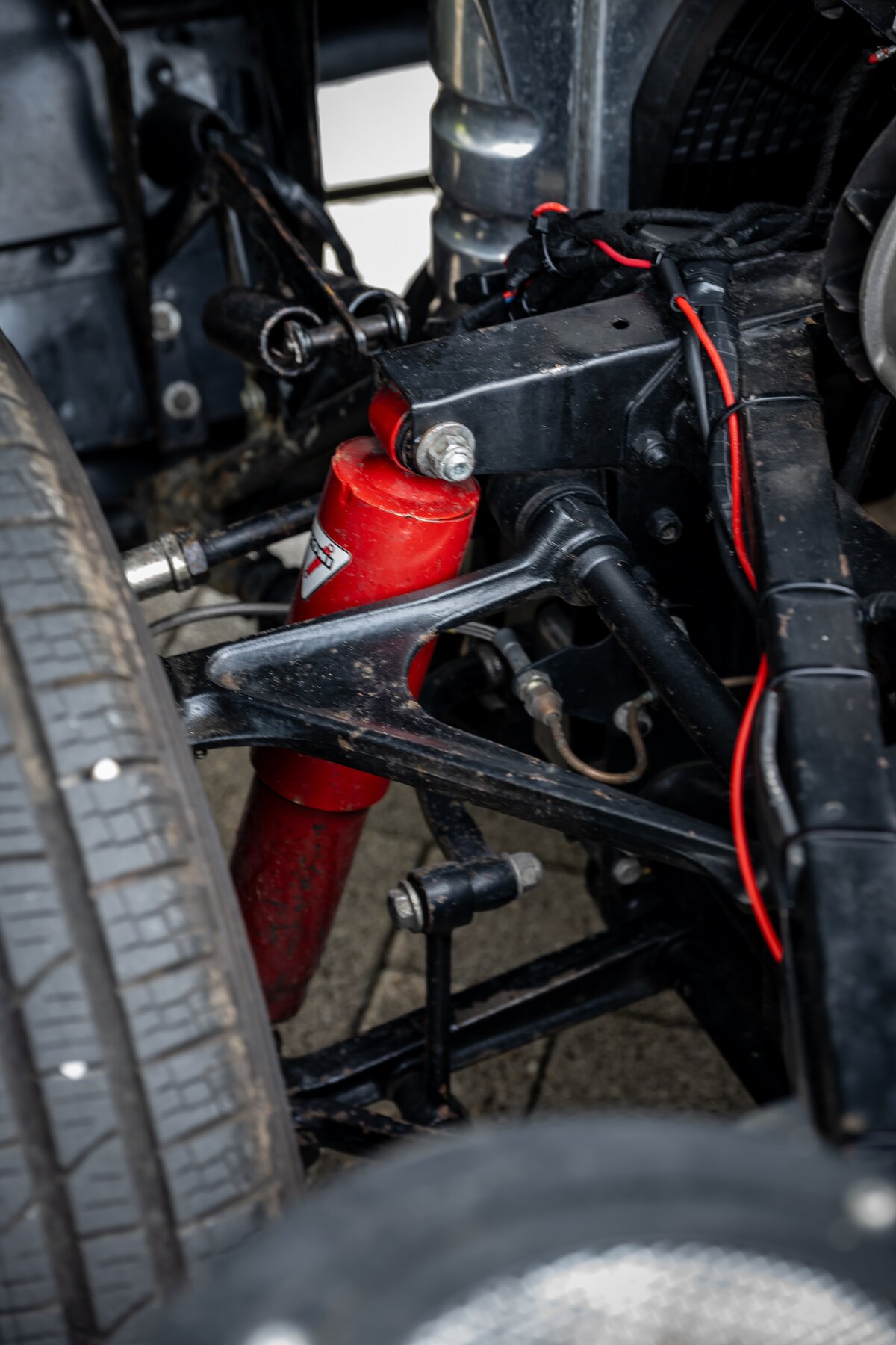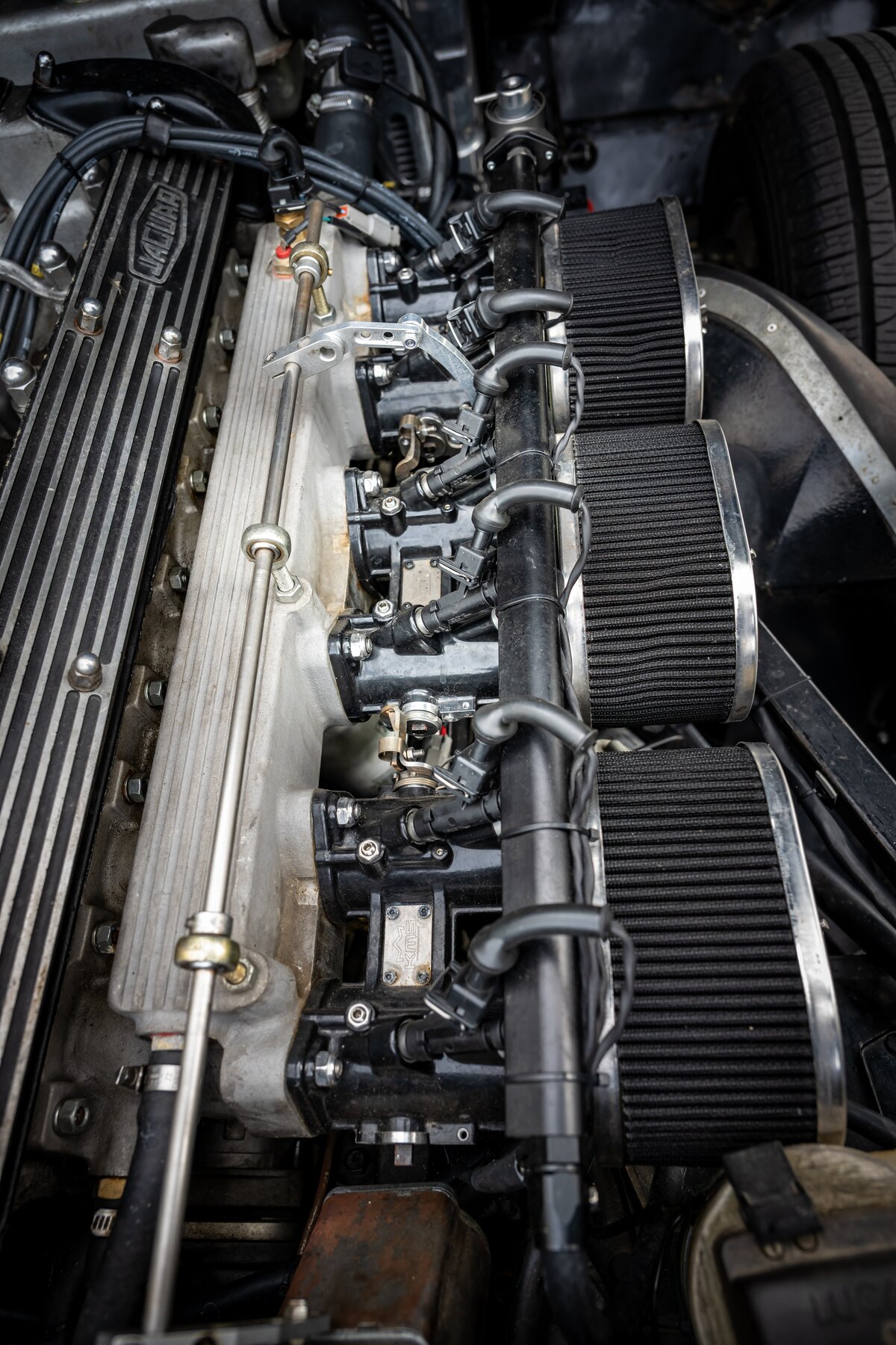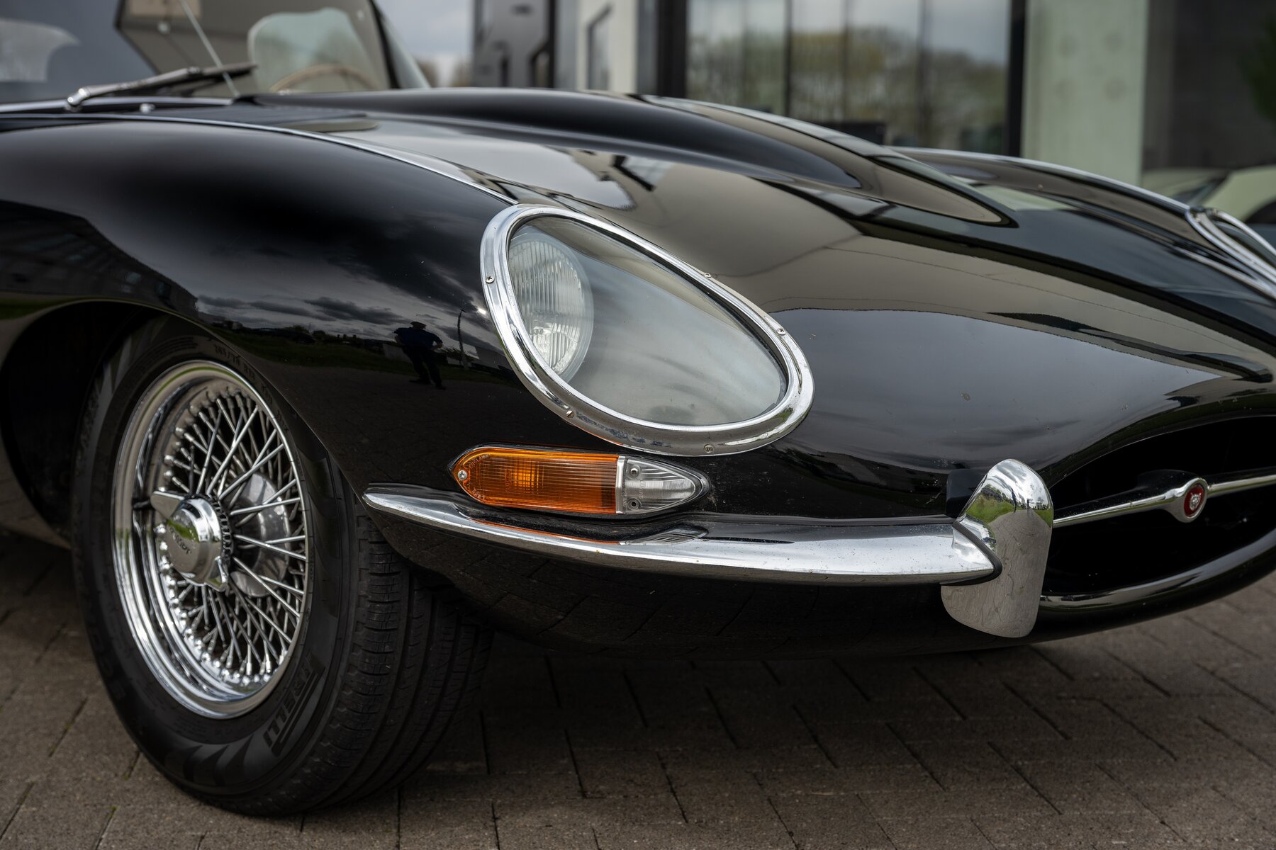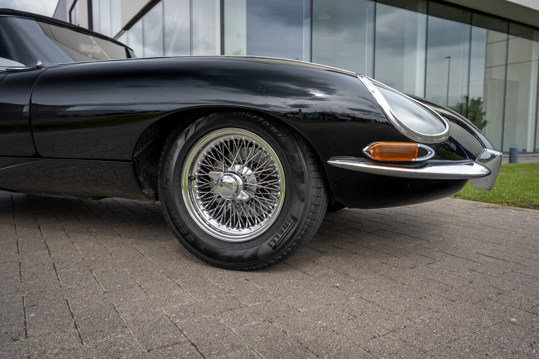Daarnaast beschikt deze E-Type over een gesynchroniseerde 5-versnellingsbak, wat het rijden aanzienlijk aangenamer maakt, zeker tijdens langere ritten of bij hogere kruissnelheden. Ook de koeling werd verbeterd dankzij een aluminium radiator met elektrische ventilator, een zeer nuttige upgrade voor wie de wagen effectief wil gebruiken en niet enkel bewaren. Voor een betere wegligging zijn Koni-schokdempers gemonteerd, waardoor de auto strakker, stabieler en met meer vertrouwen rijdt.