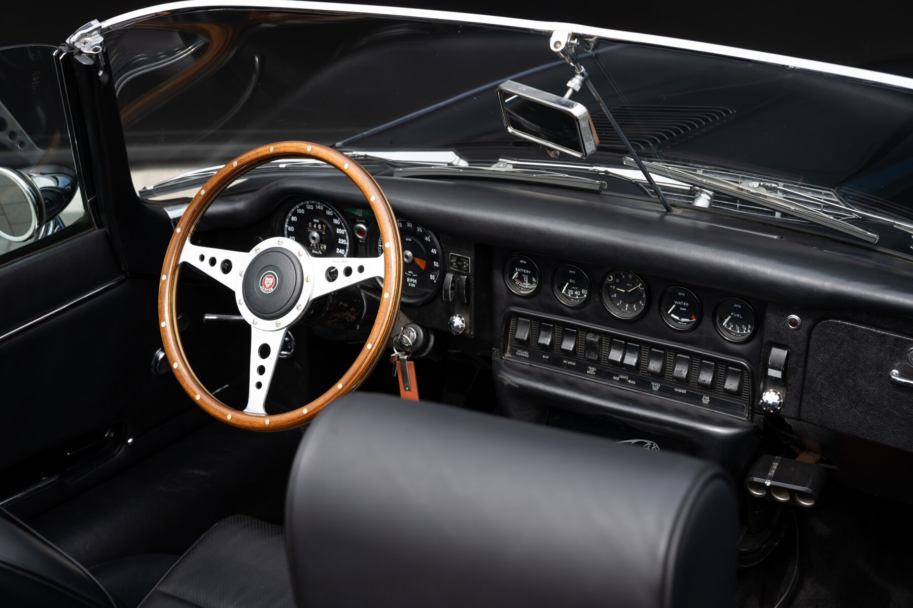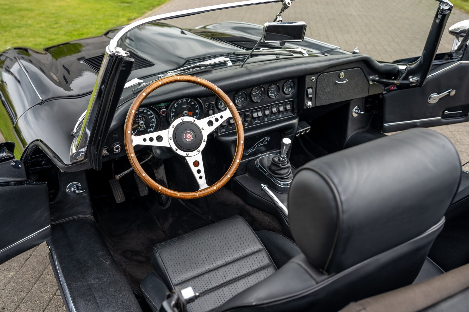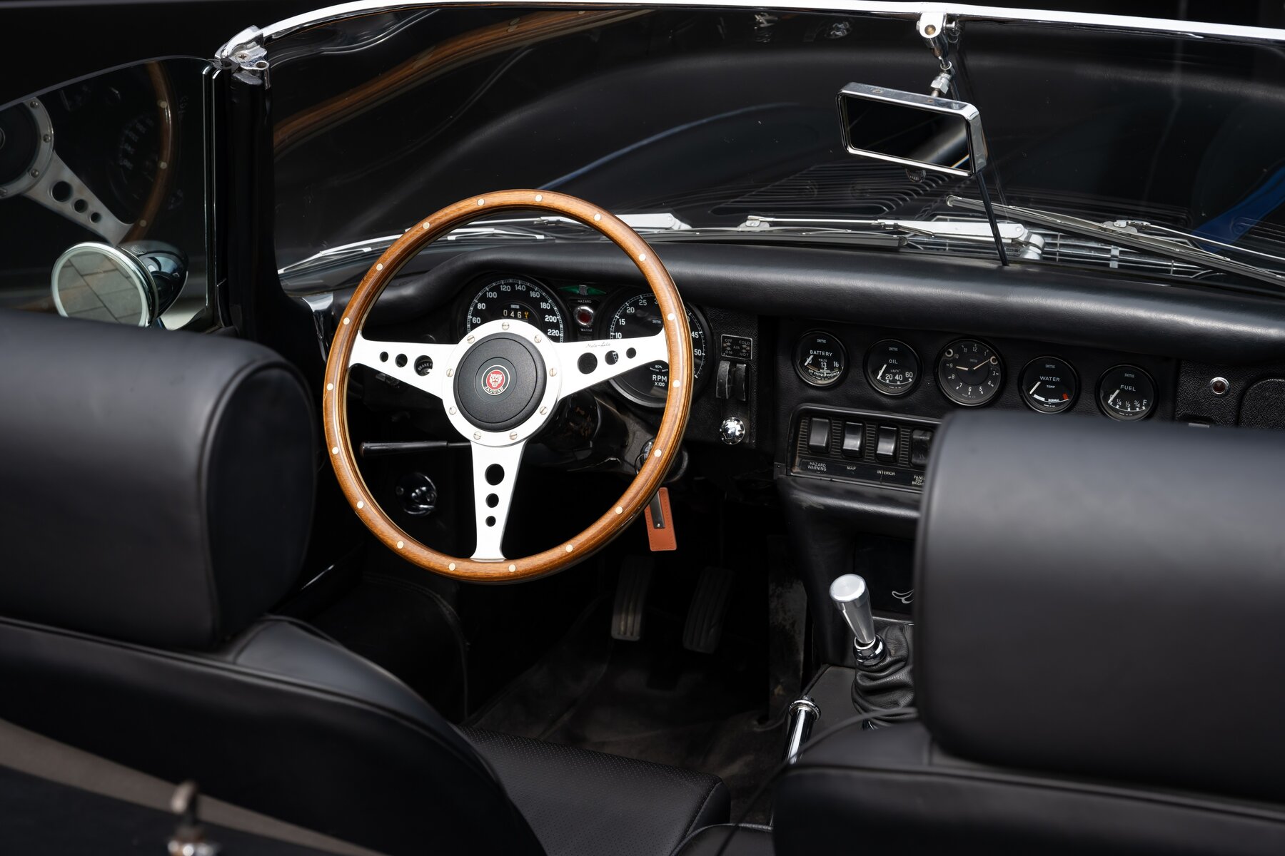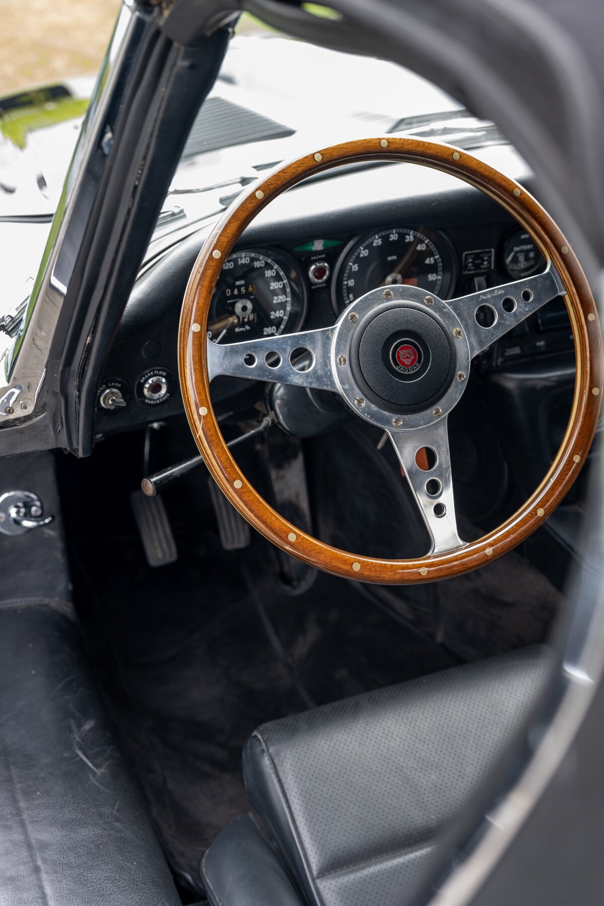 Ook het zitcomfort werd aangepakt. De wagen is uitgerust met zwart lederen stoelen met verbeterd comfort, waardoor hij zich uitstekend leent voor langere ritten, meerdaagse rally’s of ontspannen uitstappen. Dit is dus geen E-Type die enkel mooi oogt in een collectie, maar een exemplaar dat uitnodigt om daadwerkelijk mee te rijden.