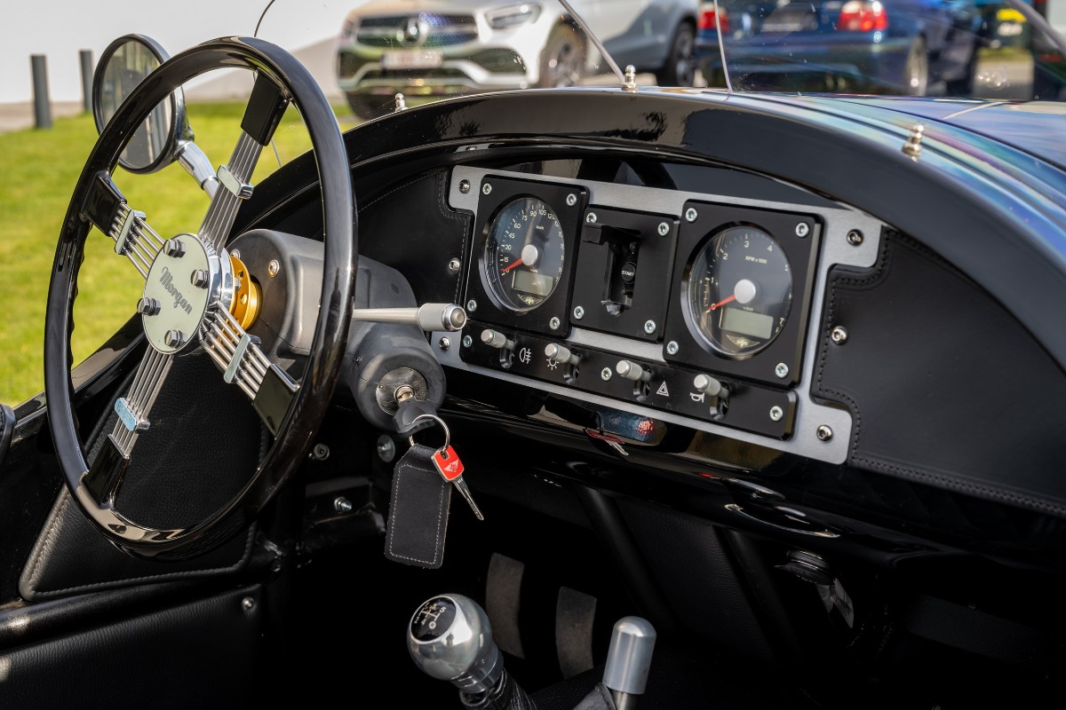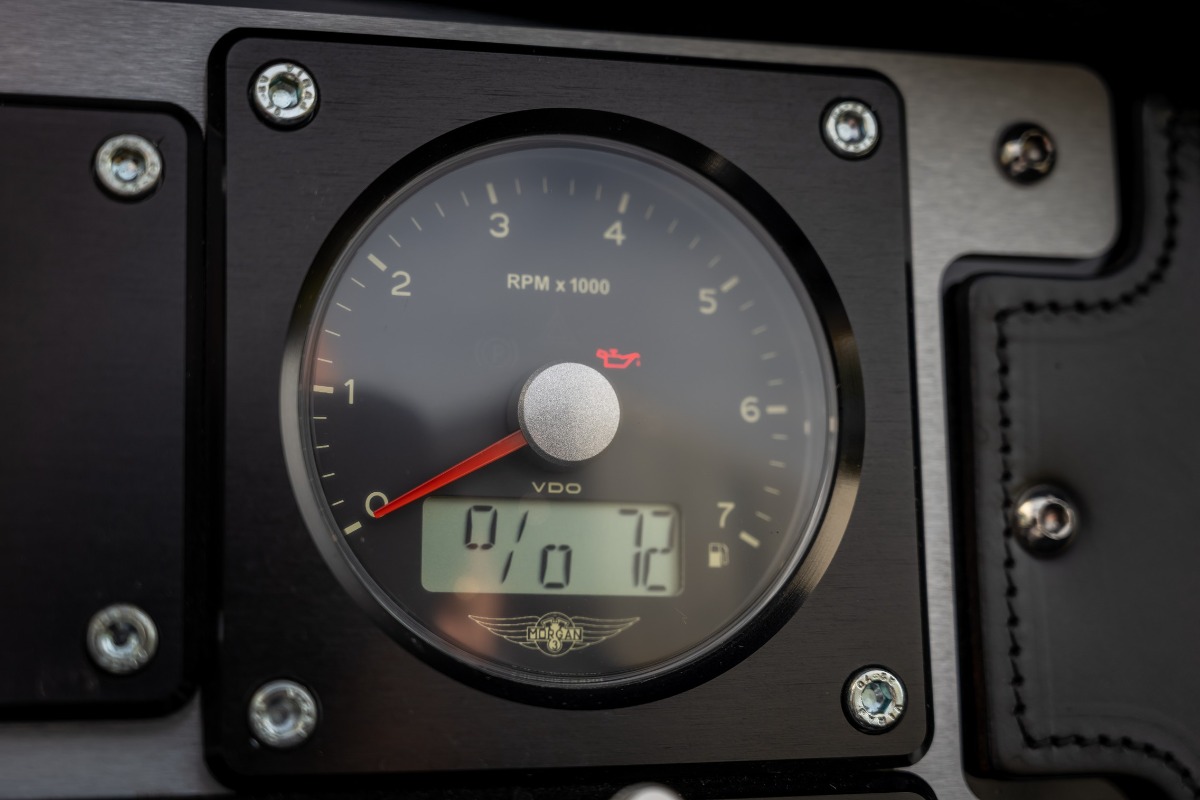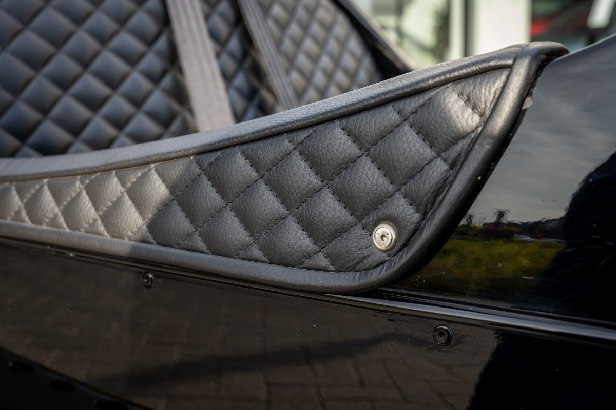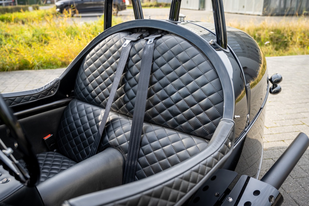 Verder is de Morgan uitgevoerd in een prachtige zwarte specificatie met leder gestikt met ruitmotief, verwarmde zetels, zwarte uitlaat, tonneau cover,