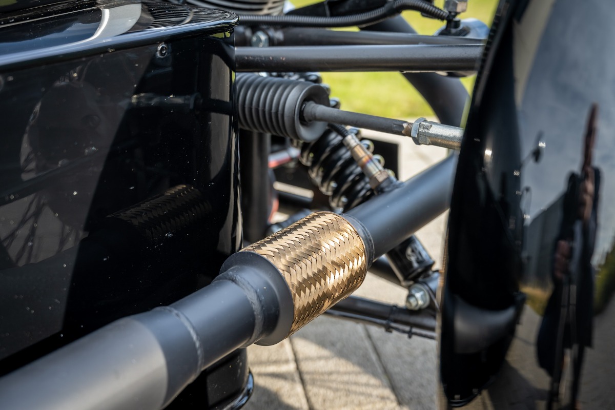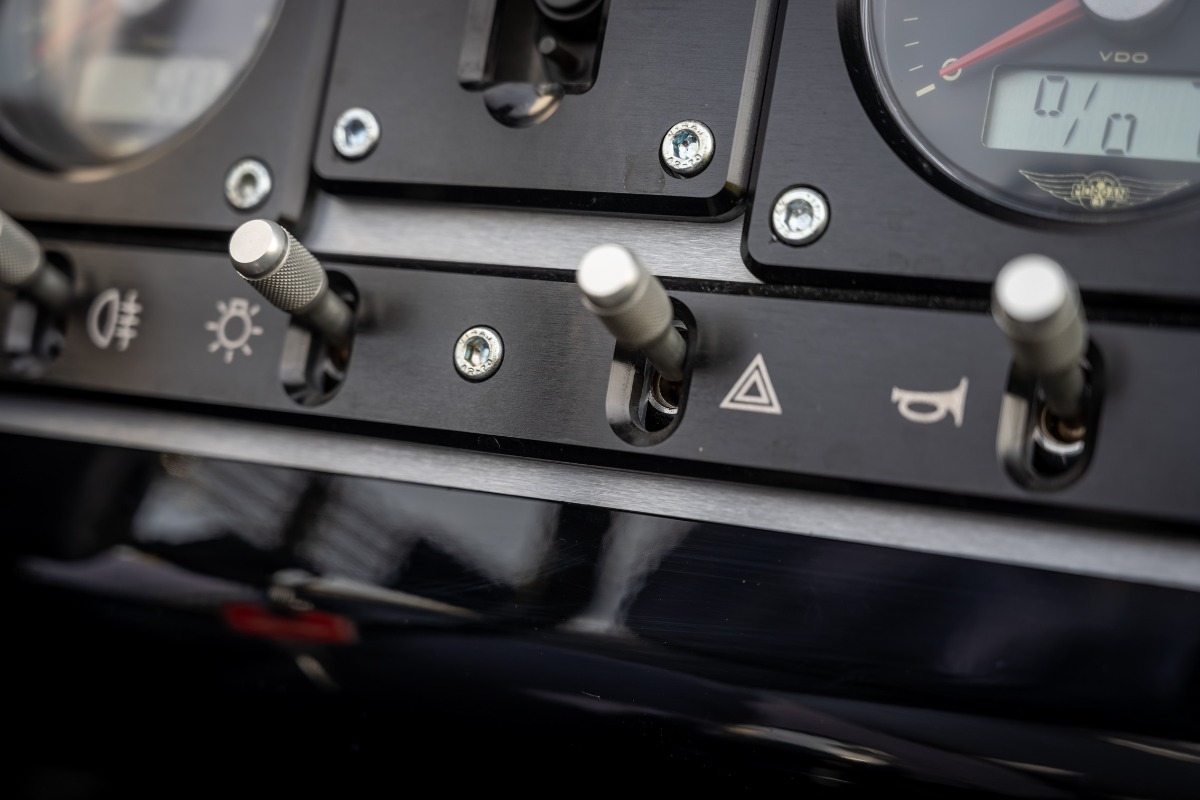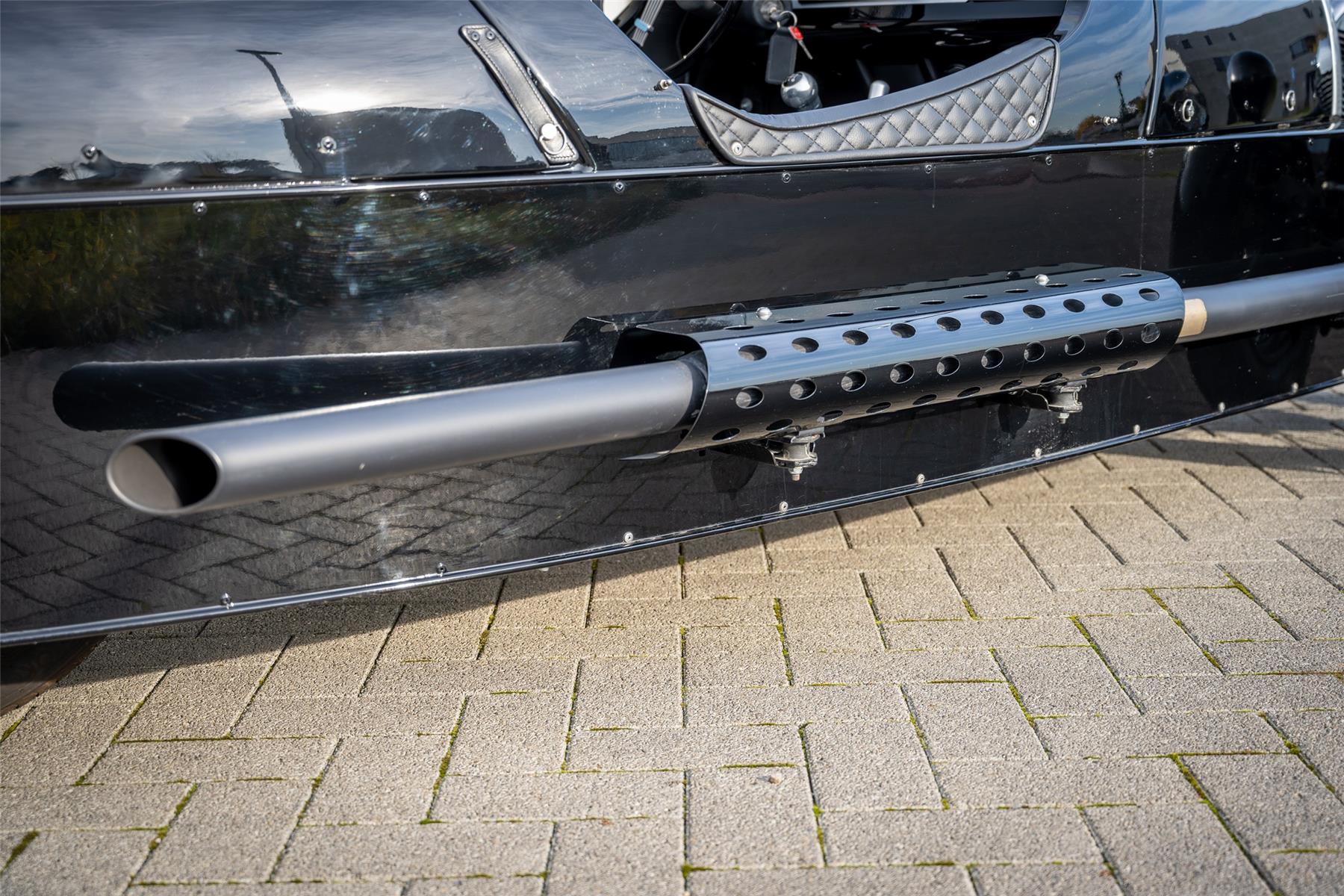 Verder is de Morgan uitgevoerd in een prachtige zwarte specificatie met leder gestikt met ruitmotief, verwarmde zetels, zwarte uitlaat, tonneau cover,