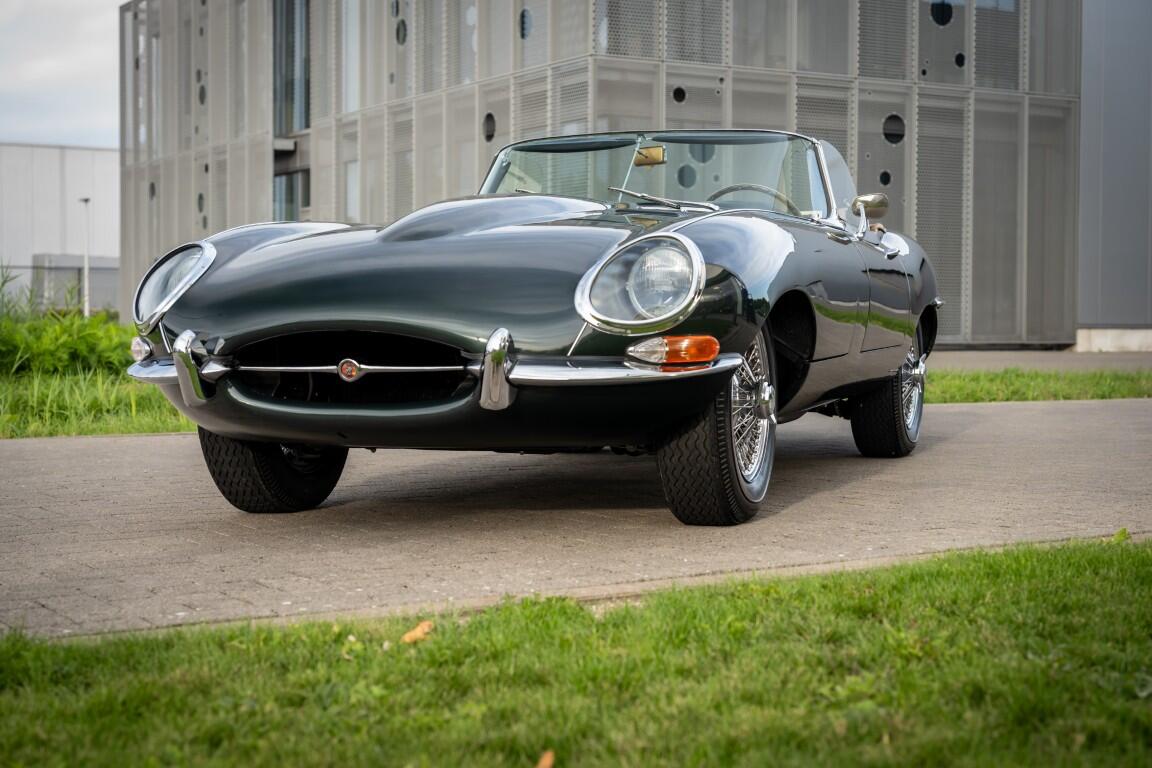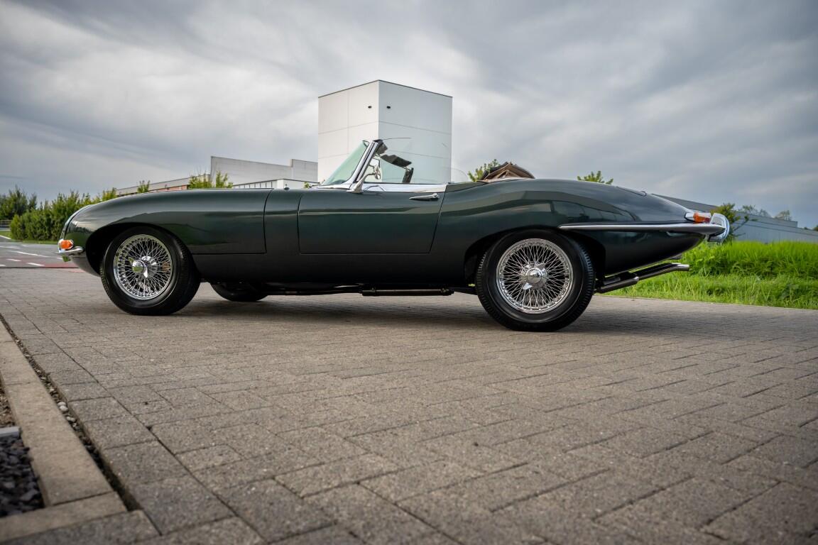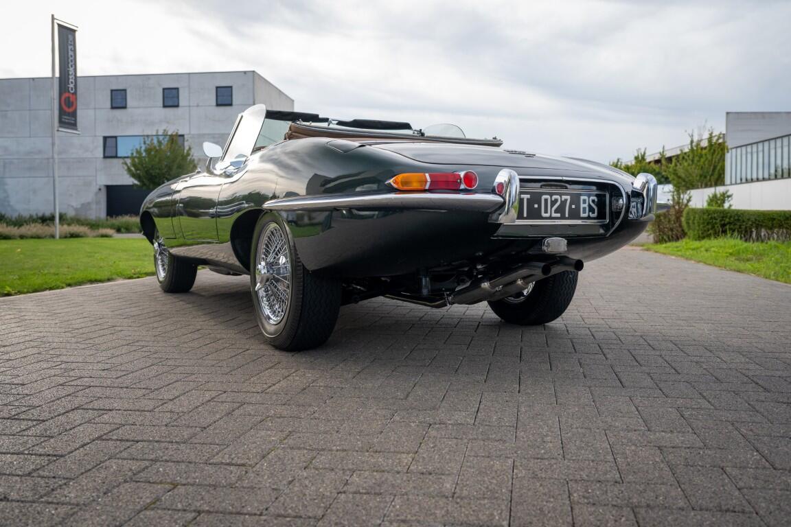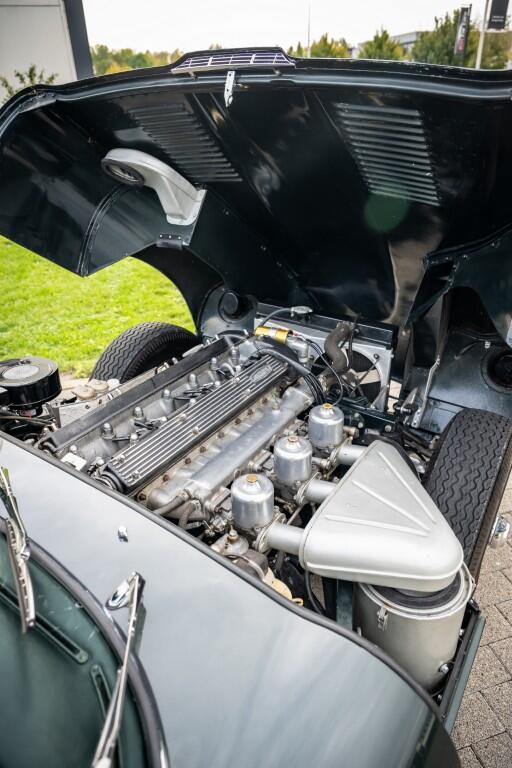 Complete spuitbeurt: De wagen werd compleet gespoten in de klassieke Opalescent Green, waardoor de iconische lijnen van de E-Type weer perfect tot hun recht komen.