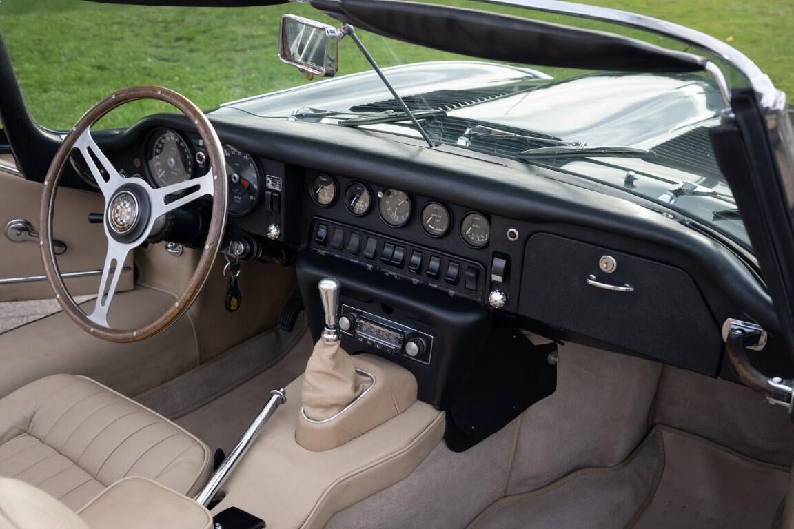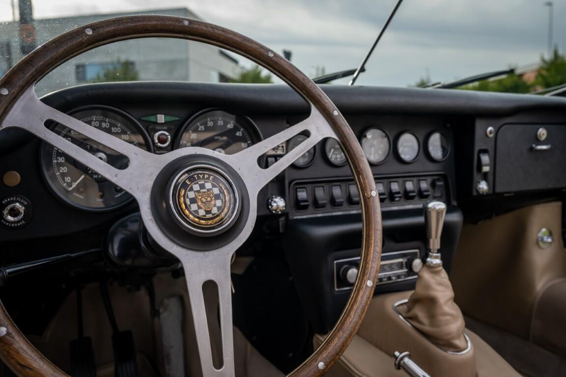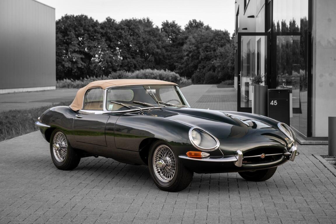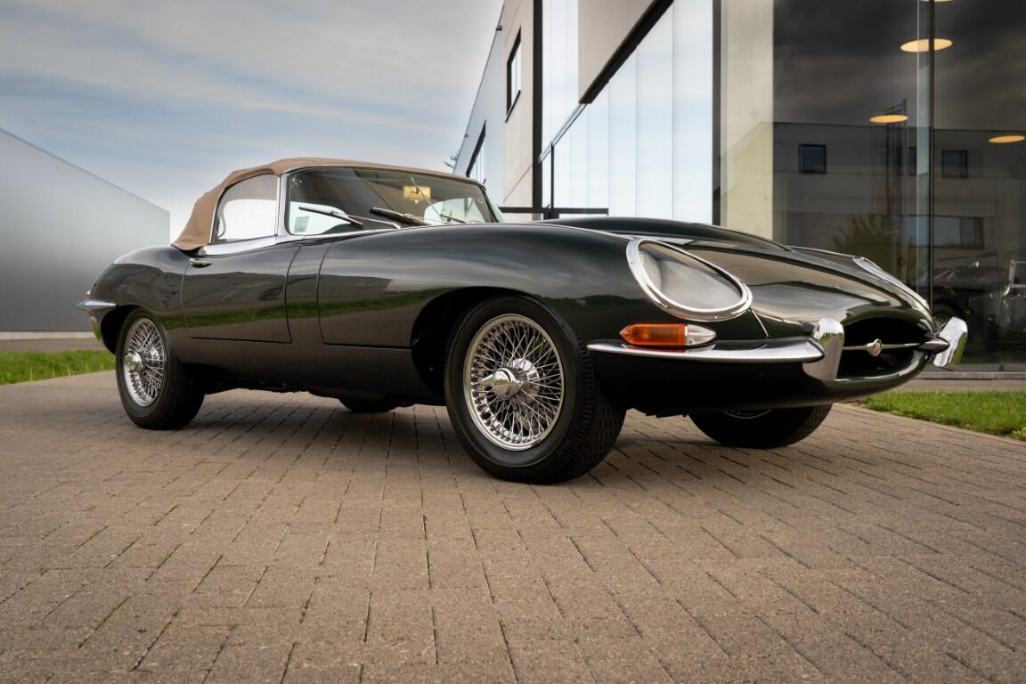 Complete spuitbeurt: De wagen werd compleet gespoten in de klassieke Opalescent Green, waardoor de iconische lijnen van de E-Type weer perfect tot hun recht komen.