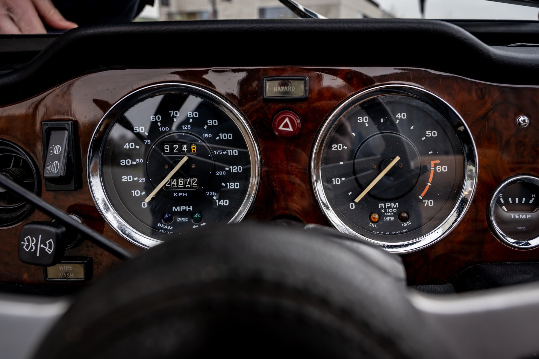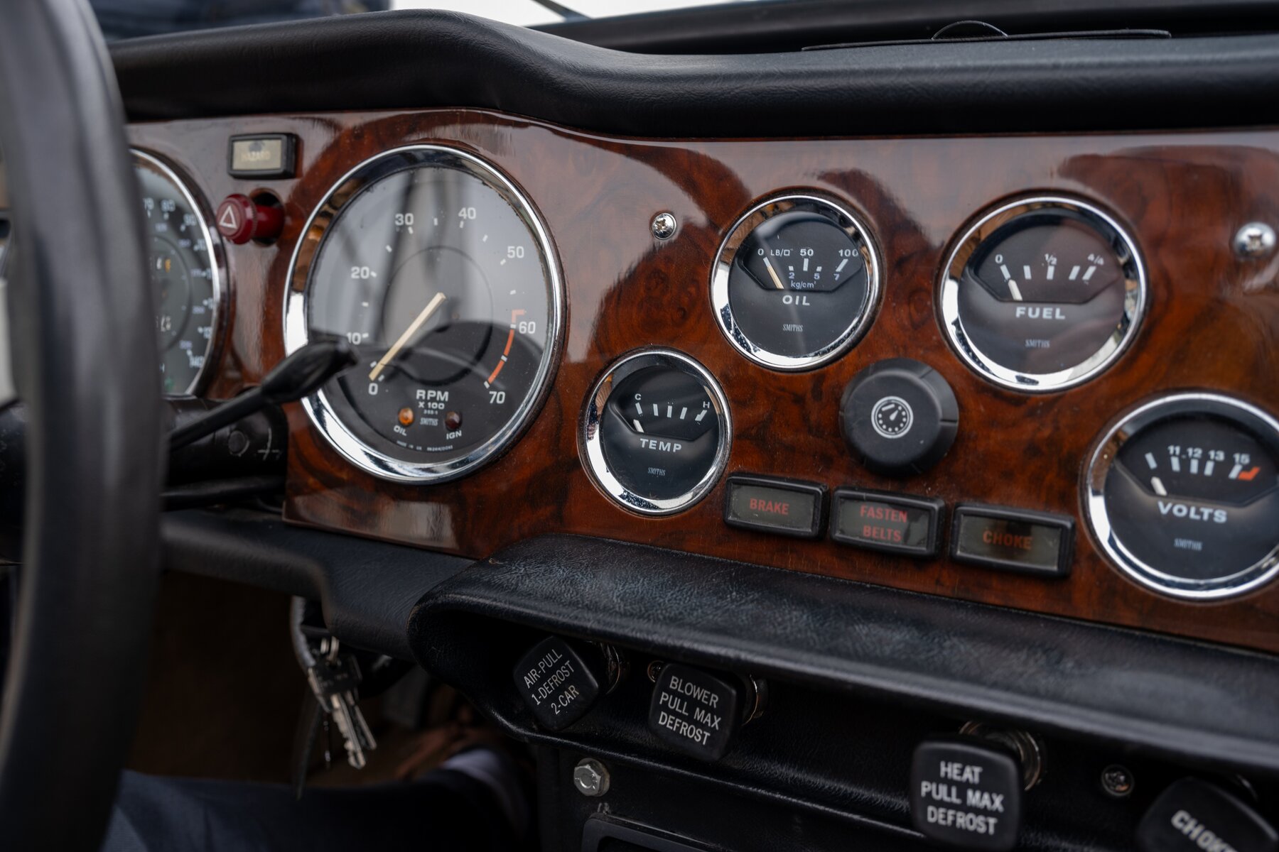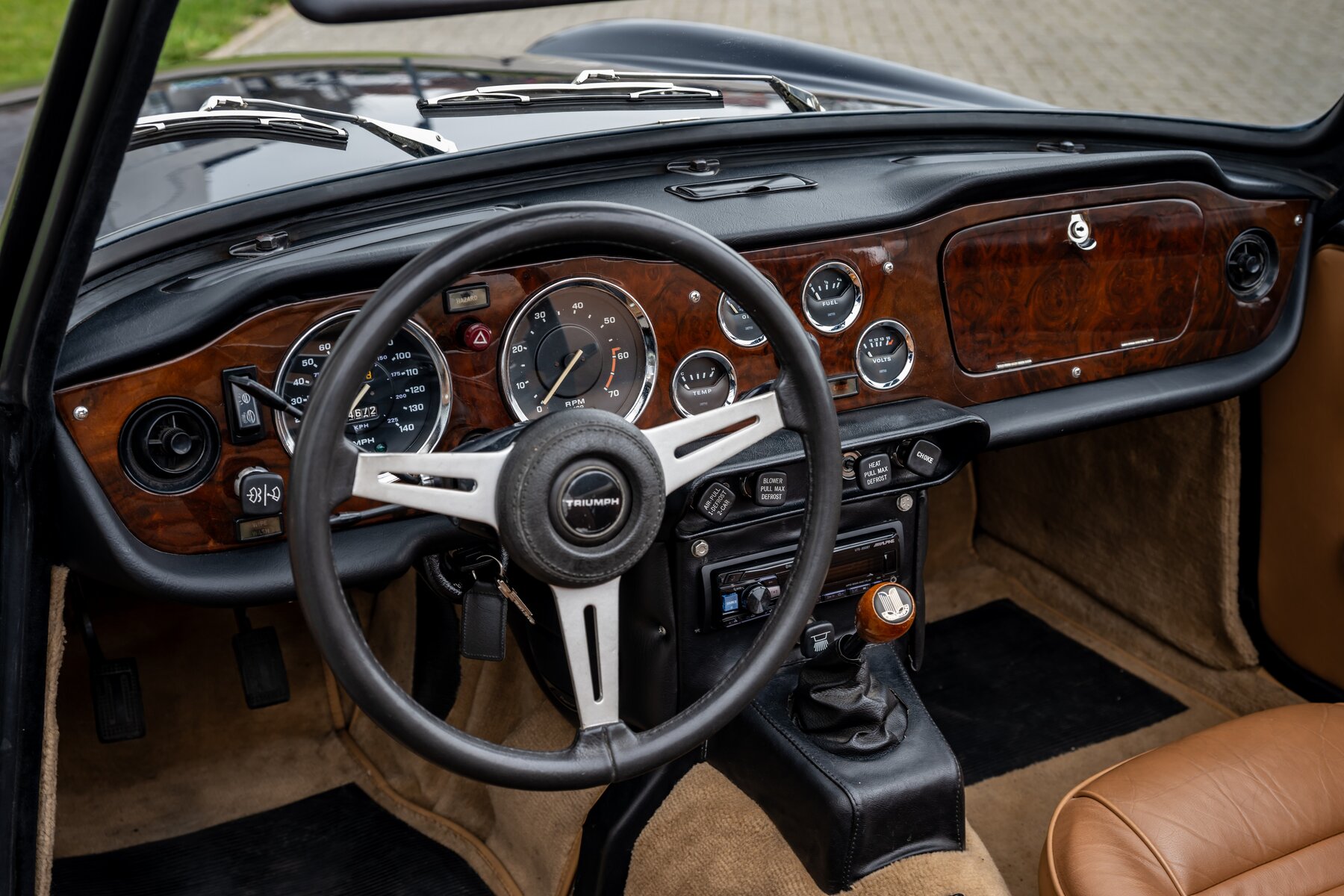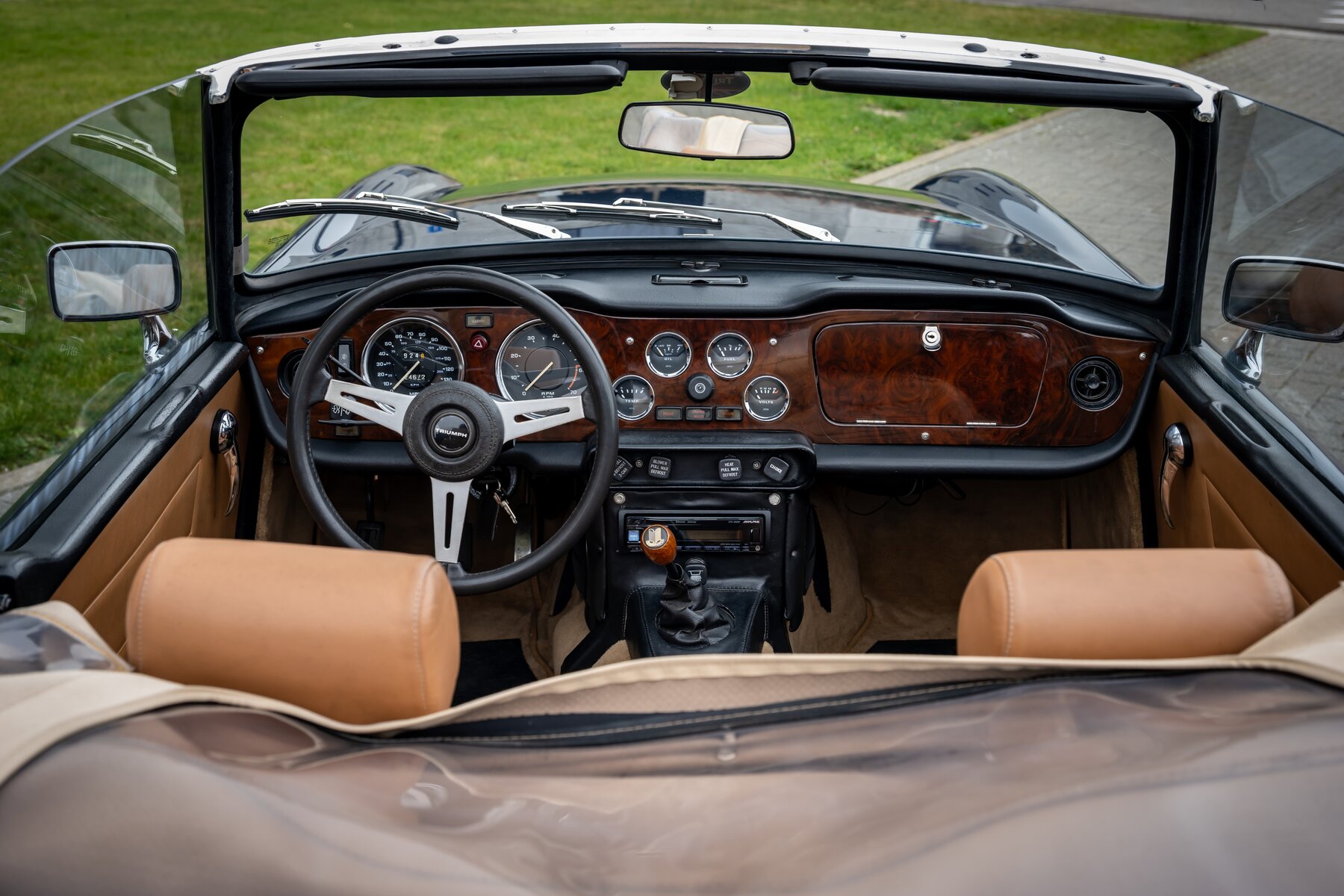 De zescilinder van de TR6 levert fijn koppel onderin en een volle, verslavende klank. Met overdrive schakelt hij ontspannen lange afstanden weg; het onderstel voelt stabiel en communicatief, precies wat je wilt op binnenwegen en toertochten. Dit is een ideale oldtimer voor wie vooral plezier wil beleven—toegankelijk, betrouwbaar en met een échte sportwagenbeleving uit de jaren ’70.