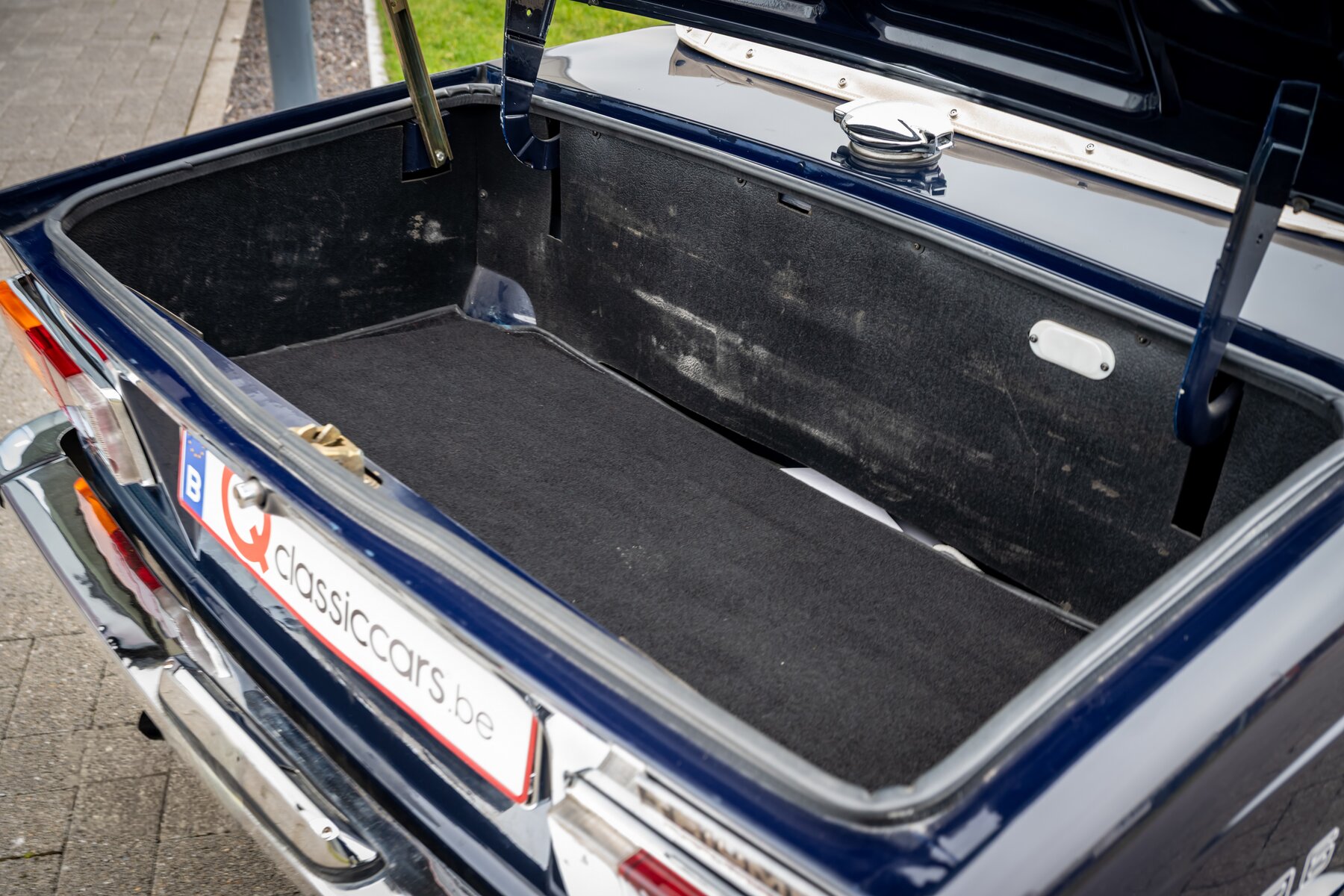 Triumph TR6, 1974 – donkerblauw | overdrive | beige mohair dak